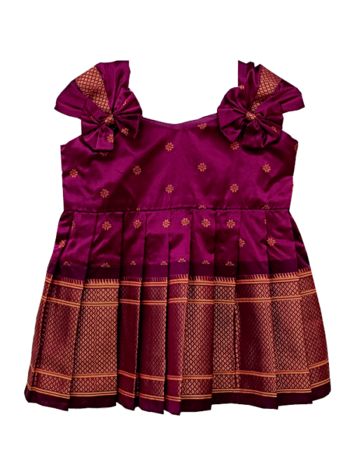Beautiful Kid’s frock is made from soft breathable Paithani silk fabric. Comfortable and elegant festive wear. Suitable for all seasons. Top has cotton lining and gets softer with each wash. Kids will love to wear it for long hours.